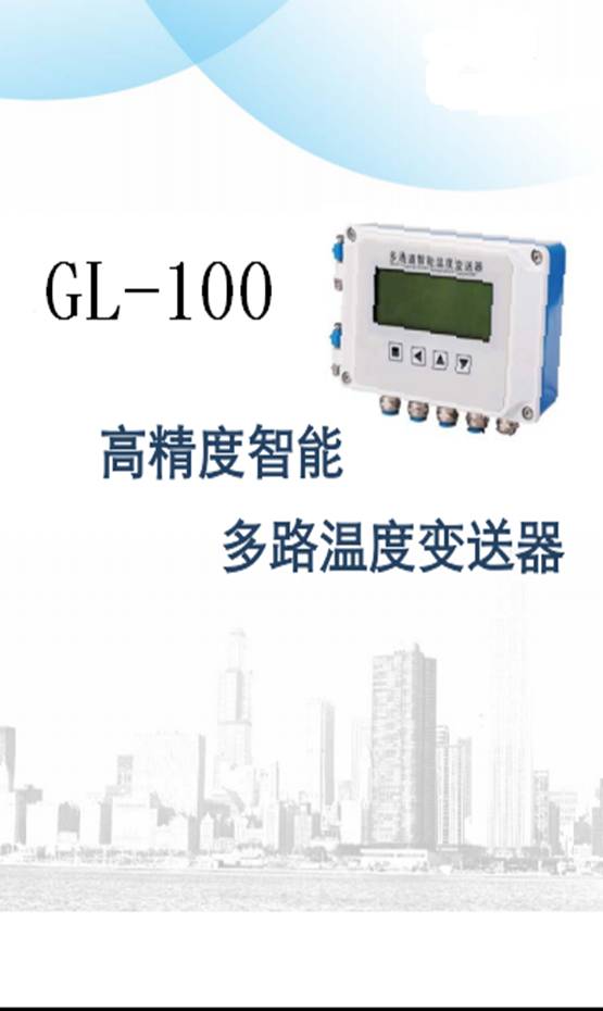 GL-100高精度智能多路温度变送器是温度系列仪表中的高性能产品,它将来自热电阻、电阻式传感器、变送器采用专用集成数字技术,以实现最好的精度信号一致性,每台变送器均在工厂进行环境温度特性化,从而保证在很宽的工作温度范围内,变送器精度高、漂移小。铝外壳保证了变送器在危险场所的使用。
