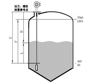 通过输入空罐高度 E(=零点),满罐高度 F(=满量程)及一些应用参数来设定,应