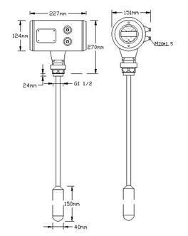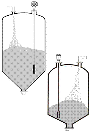 对于介电常数比较小的液体物料可以采用双探 杆式测量方式,以保障准确良好的测量。