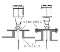 注意! 无论是缆式或杆式若想仪表工作正常,过程连接表面应为金属,当仪表装在塑料罐上时, 若灌顶也是塑料或其它非导电材质时,仪表需要配金属法兰,若采用螺纹连接,需配一块金属 板。