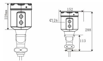 右图为杆式雷达安装图,主要用于液体料位的测 量。