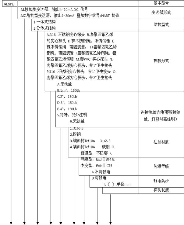 七、 GLSPL-M 型 连续式射频导纳物位变送器选型标记
