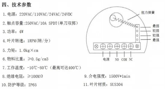 六、扭力调整扭力弹簧是用来调整转轴的输出扭力,当被测物比重较大时,可将弹簧扭力调至最强的位置而此时叶片的灵敏度较差。反之被测物比重越小时,可将弹簧调至越弱,叶片灵敏度较佳。