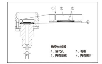 陶瓷传感器是干式传感器,过程压力直接作用在坚固的陶瓷 膜片上,基板电极和膜片电极可以检测出与压力相关的电容 变化,测量范围取决于陶瓷膜片的厚度。